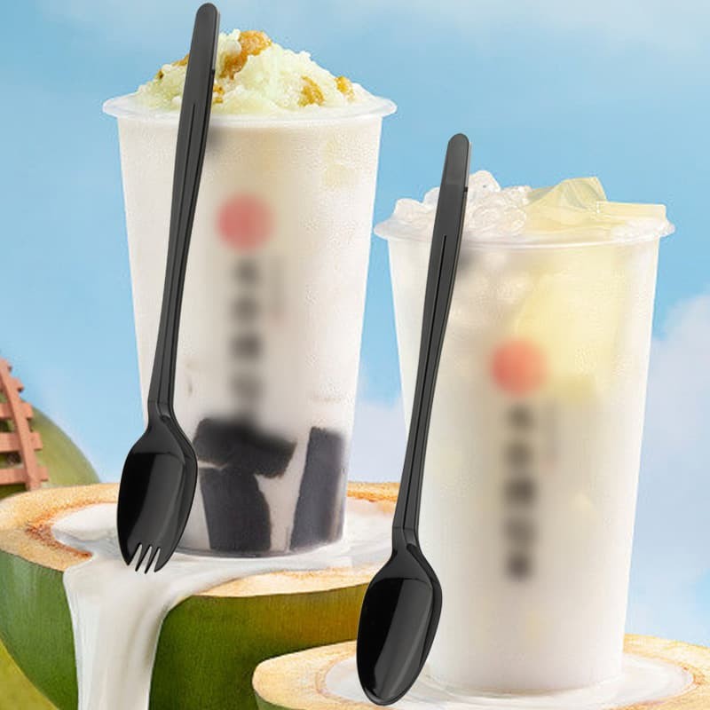 Disposable milk tea spoon commercial roasted grass fork spoon long handle slush mixing thickened independent packaging long ice spoon
